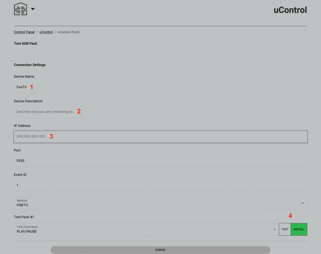 Once this is done you can install the FireTV(FLIRC) IR pack and control your Amazon device with uControl.